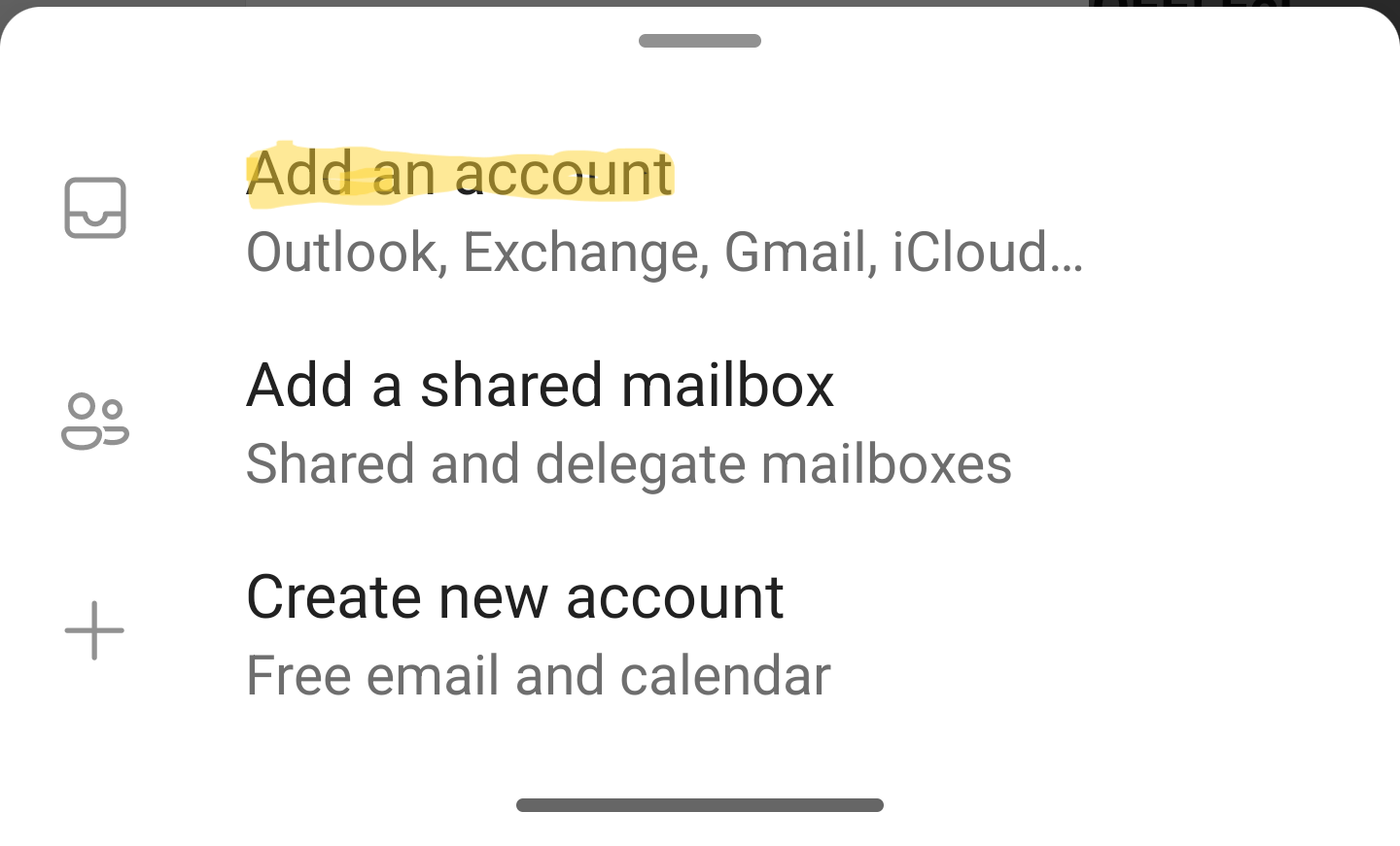 Microsoft Outlook for iOS and Android | Microsoft 365 - When asked to add a new account, select Add an account